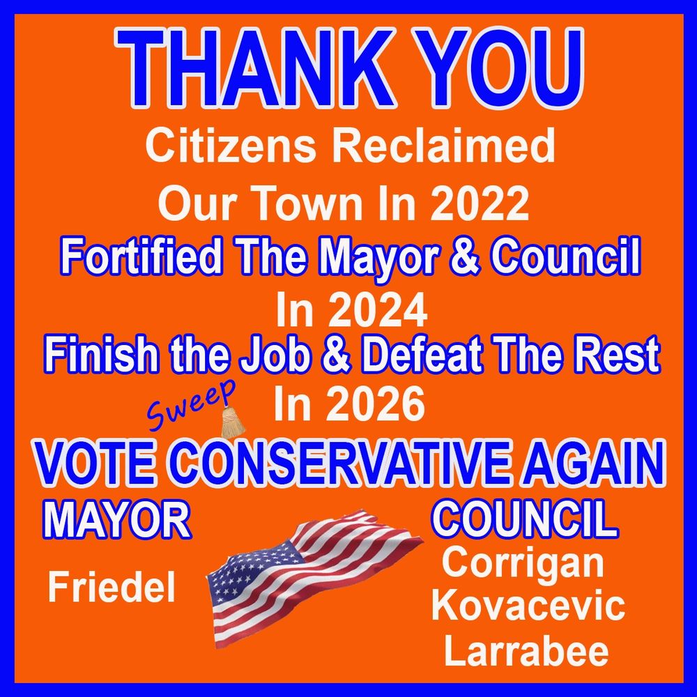 In 2026 you will hear the same old story from the left. "We are non-partisan, reasonable, inclusive and represent the neighborly, friendly folks the town deserves." Nothing could be further from the truth. There are 3 leftists running for council, supported by the Democrat Club and Liberal Ladies who will masquerade as moderates but who have attended anti ice rallies and participated in the Democrat lead insurrection at the Nov 18th council meeting with unruly behavior causing the suspension of call to public. There is a person whom Reclaim supported in 2022 that has voted against every major conservative effort since that time now running for mayor with the Democrats.
